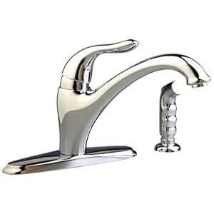 Product Description : From the ManufacturerAmerican Standard Lakeland Single Control Kitchen Faucet with Cast Brass Spout in Stainless Steel, #4114.001.075. Includes a color matched handspray. With a escutcheon plate. Product Description : Color/Finish:Stainless Steel Ceramic disc valve provides a lifetime of smooth handle operation and drip-free performance. Durable brass construction for a long life. Includes finish-matched side spray. Metal lever handle complies with ADA guidelines. Can be mounted with or without supplied escutcheon. Cap provided for non-spray applications. Braided flexible supply hoses with 3/8' compression connectors. Note: Stainless Steel Lifetime finish won't tarnish or scratch.